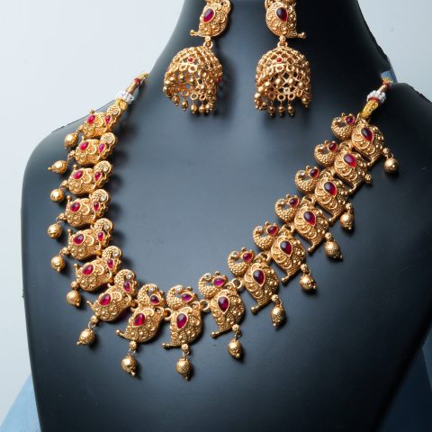 Antique Gold Necklace, mothers day gift,One Gram Gold Necklace,Kemp necklace Set, Indian Jewelry,Temple Jewelry,Temple Necklace